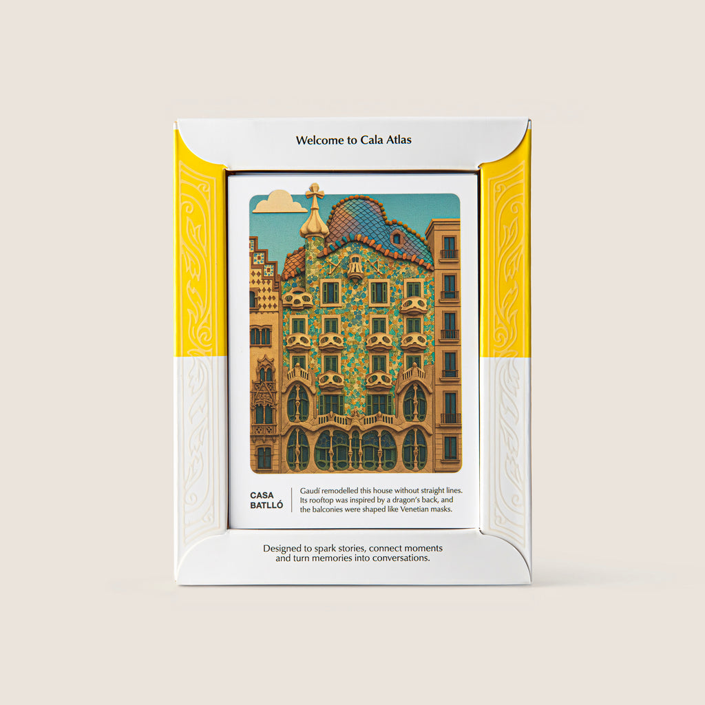 Cala Atlas is as much an experience as it is an object of design. Printed in Germany with responsible production standards, every detail reflects attention and intention, from the soft matte texture of the cards to their vibrant colour definition and precise finish. Thoughtfully made to be used, displayed and appreciated, the Barcelona Edition offers a tactile and visually refined experience.